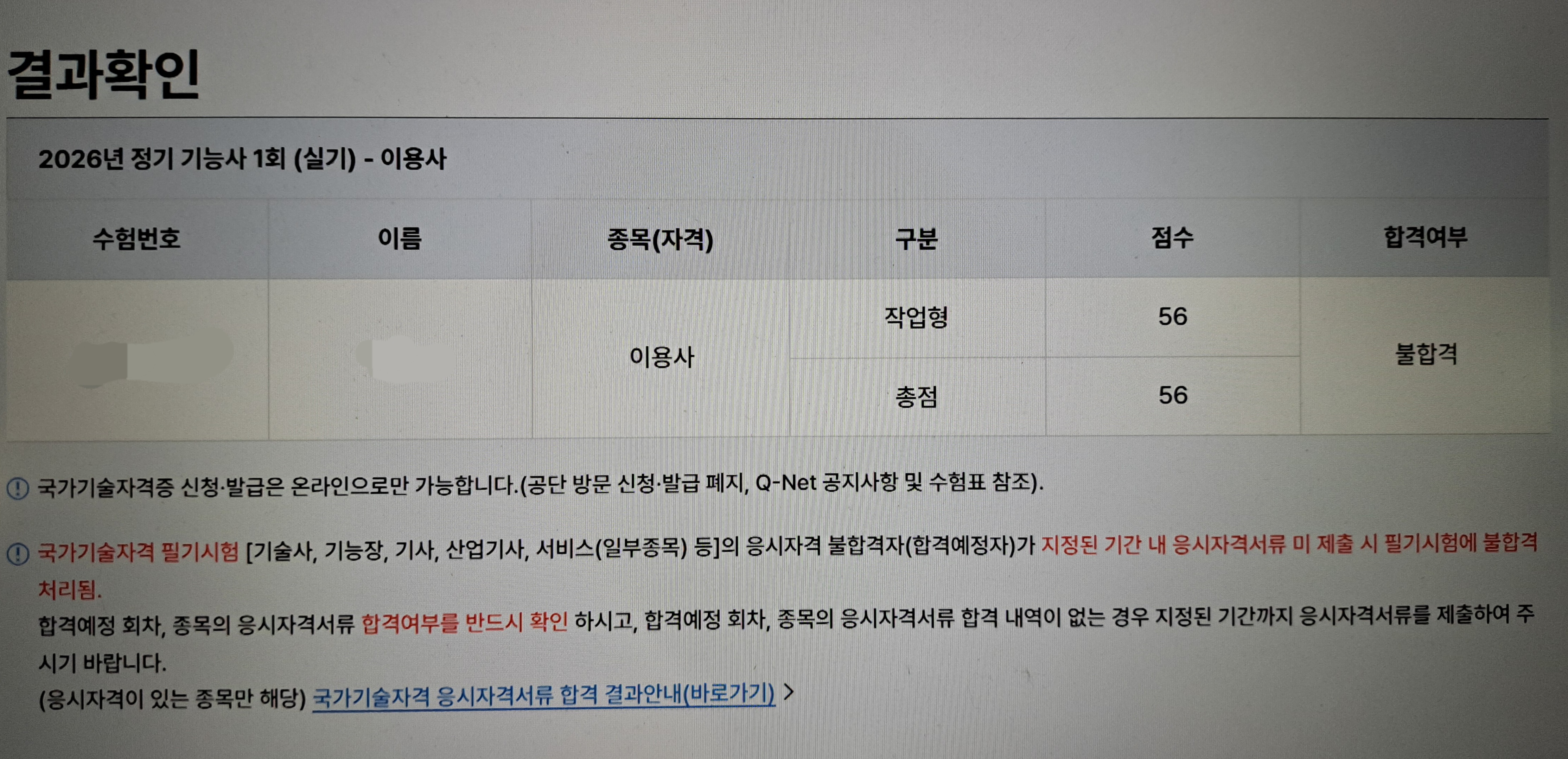 불합격이라는 사실은 분명한데,